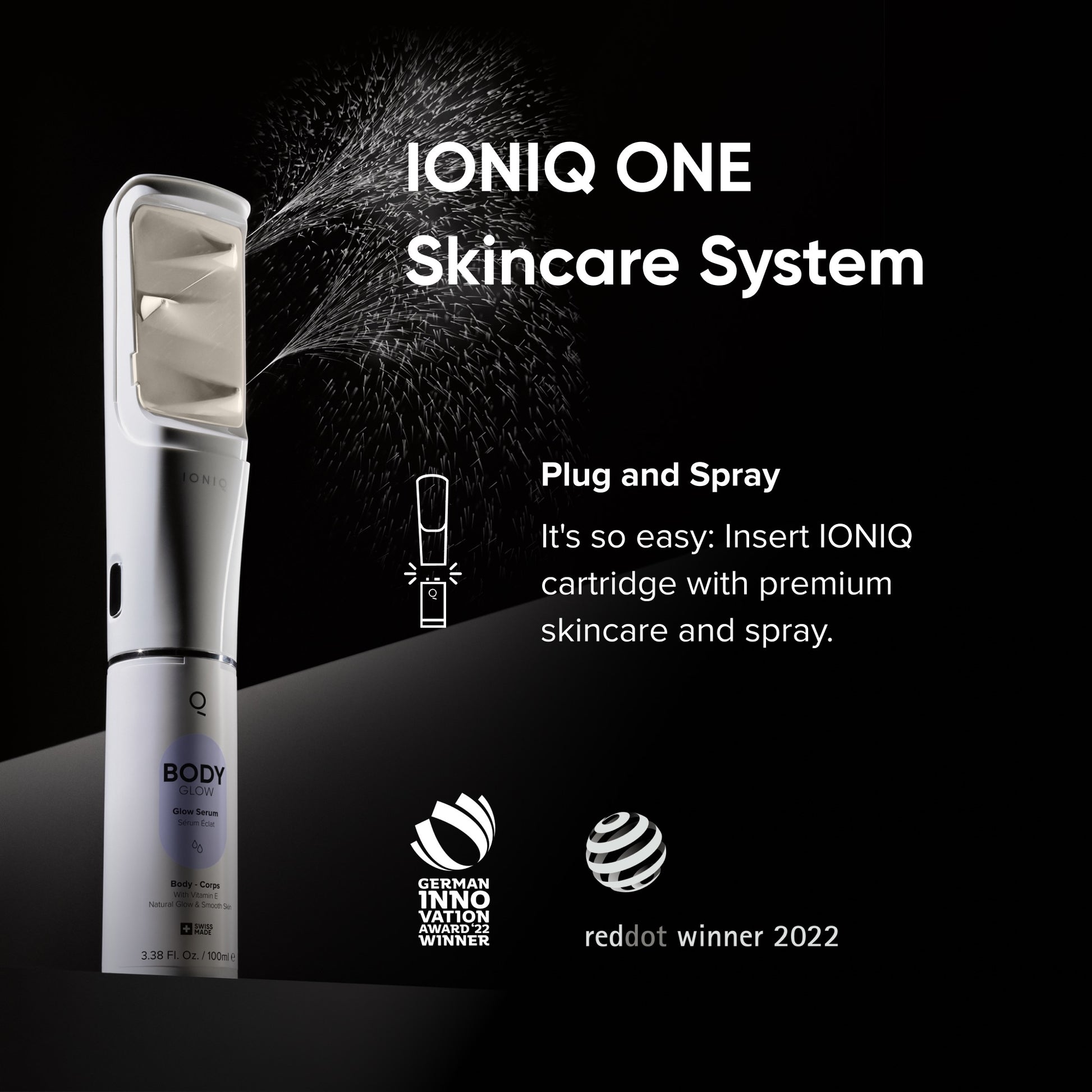 - IONIQ GLOW ist ein Must-Have für die tägliche Beauty-Routine. Man kann sich so lange einsprühen bis das perfekte Hautgefühl erreicht wird. Auch eine mehrmalige Anwendung – zum Beispiel im Winter oder bei sehr trockener Haut – ist kein Problem. Für gleichmäßiges Einsprühen berechnet die IONIQ Skincare App für jedes Körperteil die ideale Sprühzeit.