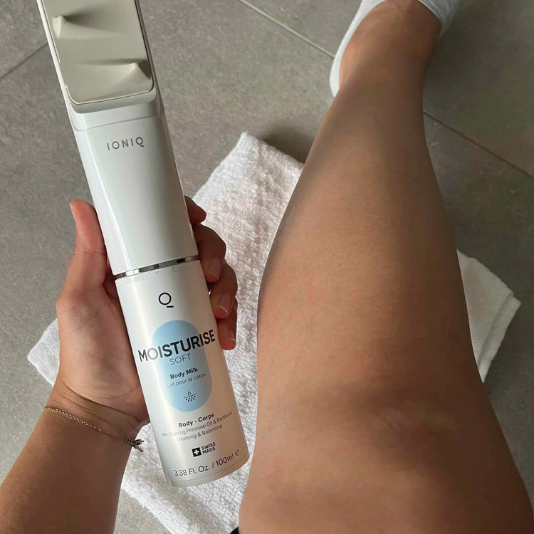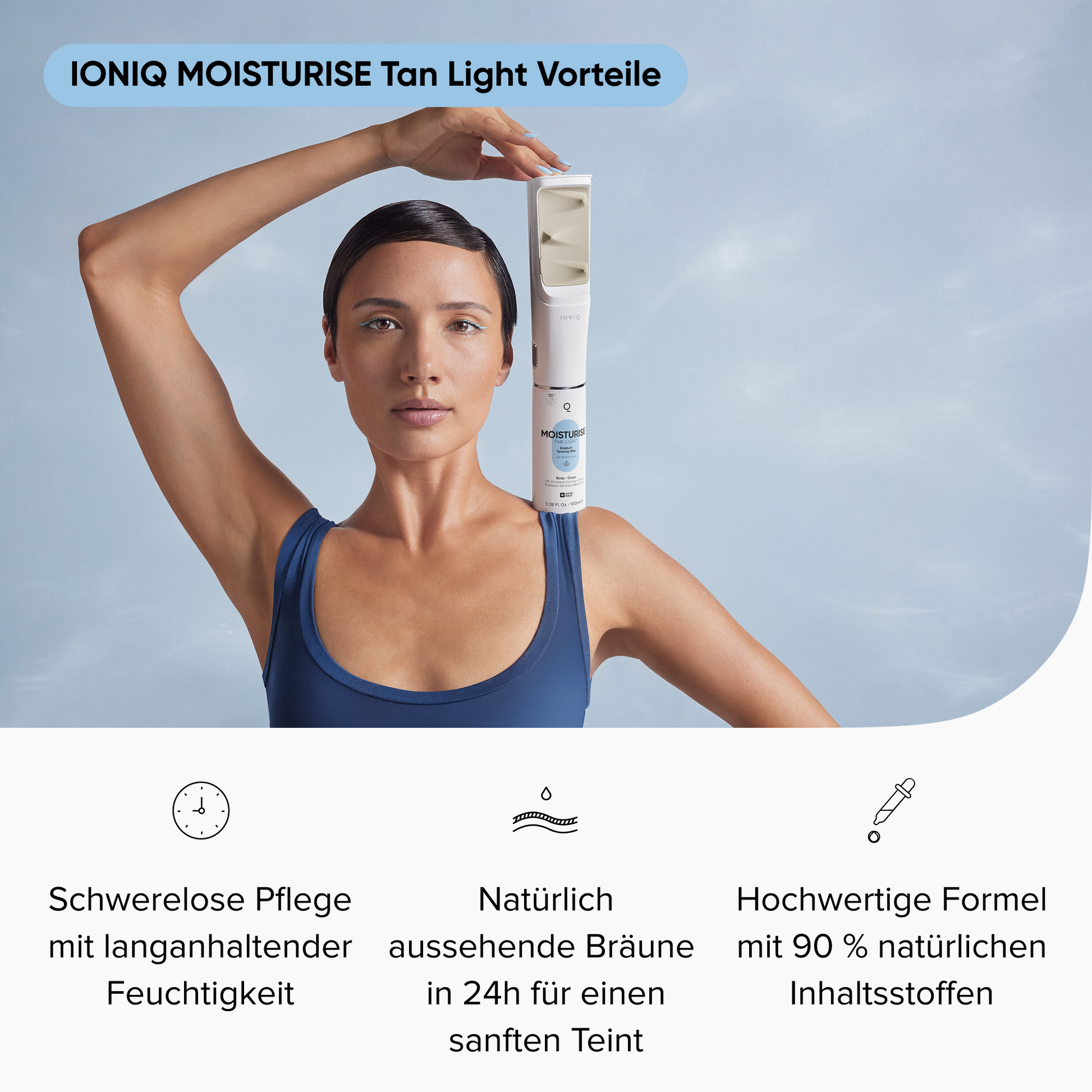 IONIQ MOISTURISE kombiniert innovative Hautpflege mit modernster Technologie für eine perfekt gepflegte, hydratisierte Haut – mit oder ohne sanfte Bräune.