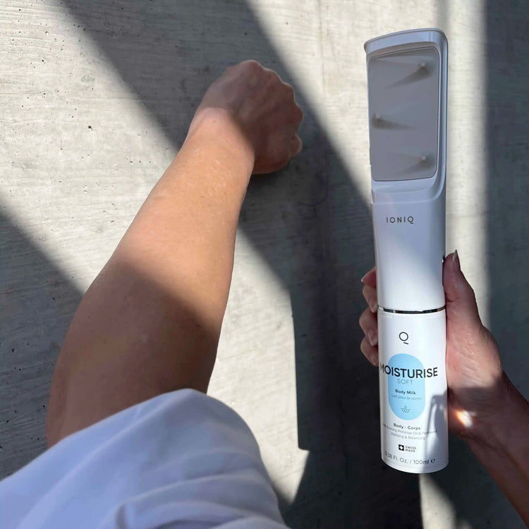 IONIQ MOISTURISE ist eine innovative Produktlinie, die auf Feuchtigkeitspflege und sanfte Bräune spezialisiert ist. Dank der Magnetic Skin Technology werden die Produkte berührungslos mit dem IONIQ ONE Sprayer aufgetragen und gleichmäßig verteilt. Die Produktlinie umfasst MOISTURISE Soft für intensive Hydration und MOISTURISE Tan Light für eine gepflegte Haut und eine natürliche, aufbaubare Bräune.
