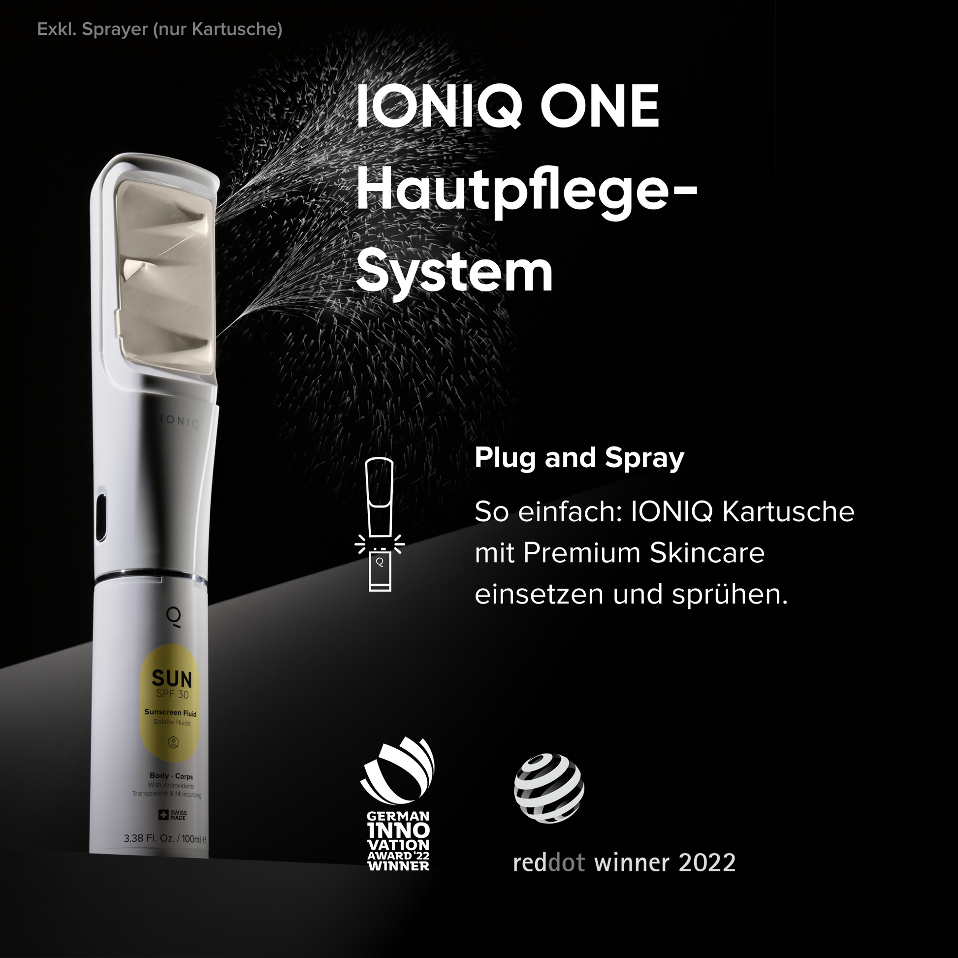 Kaufe IONIQ SUN LSF 50 oder LSF 30 zusammen mit dem IONIQ ONE Sprayer.