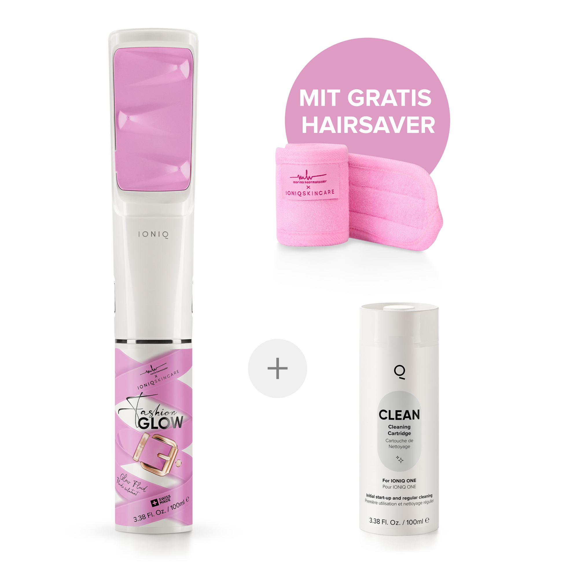 Exklusiv, begehrt, einzigartig: Diese Kollektion vereint alles, was Fashion Glow auszeichnet – von der ikonischen Fashion Glow Kartusche über das Haarband bis hin zum Spraypad in Runway Pink. Gemeinsam mit Marina Hoermanseder entwickelt, bringt dieses Bundle Technologie, Stil und Glow in perfekten Einklang. Ob als Geschenk oder zum Selbstentdecken – es ist dein perfekter Einstieg in die Welt von IONIQ Skincare.