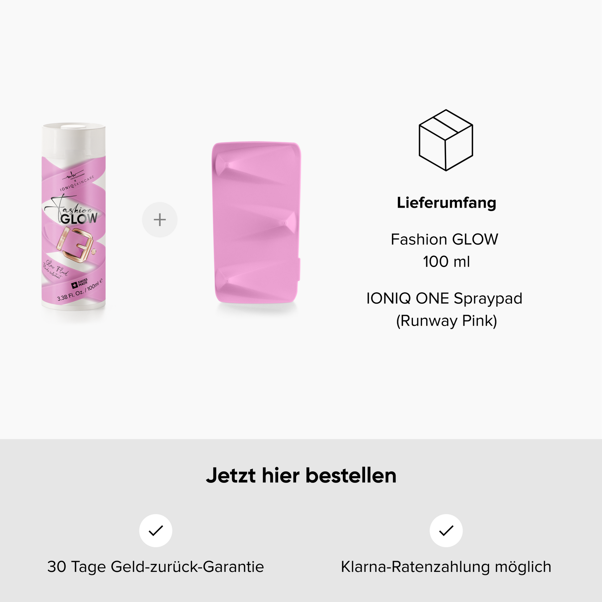 Get the fashionable upgrade for your IONIQ Skincare System: This set is perfectly matched to your IONIQ ONE Sprayer. The proven IONIQ GLOW formula gives your skin an even, natural-looking radiance in seconds—without rubbing or residue.