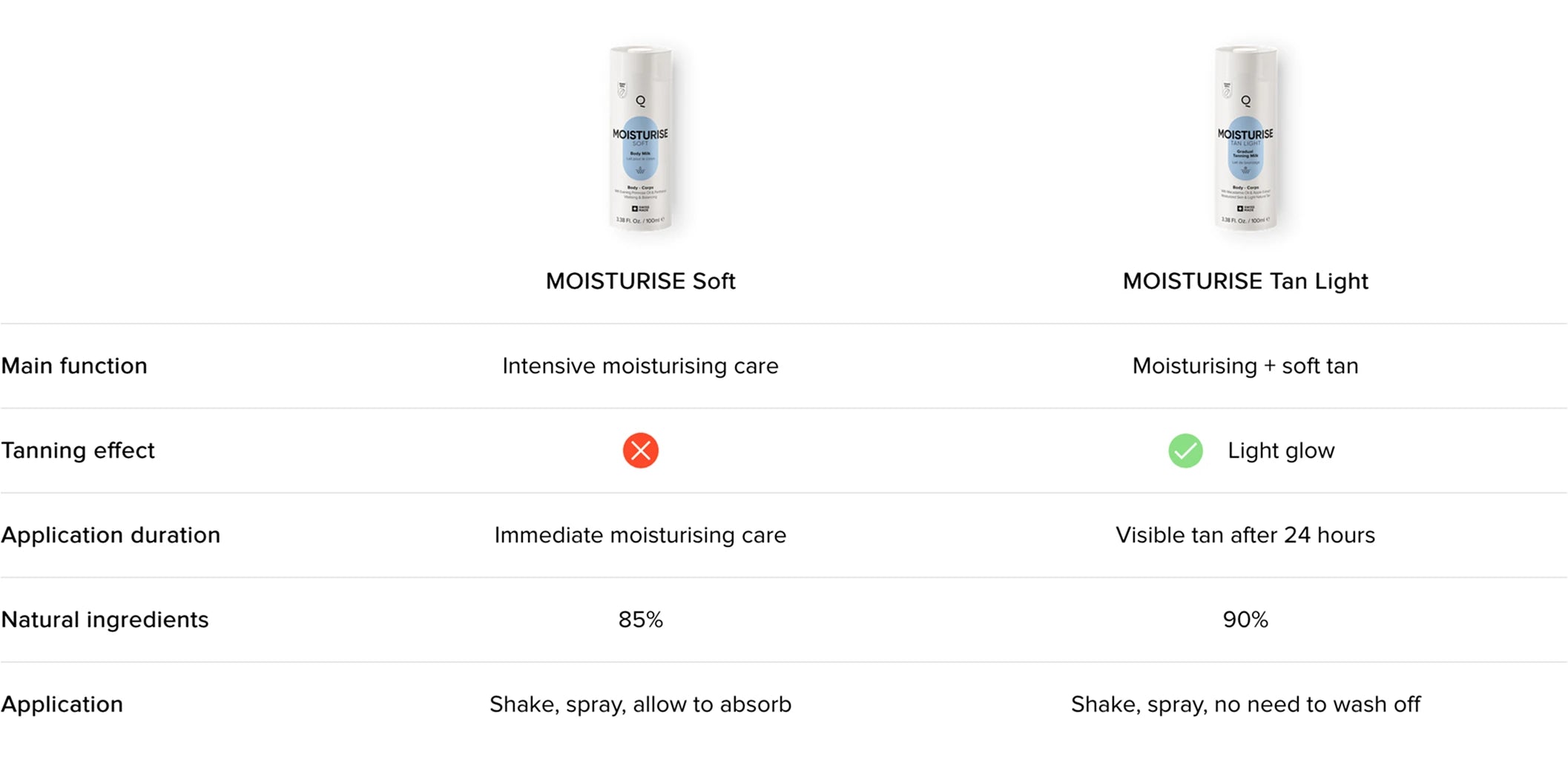 MOISTURISE Tan Light: Gently prolongs your glow and provides your skin with intensive moisture.