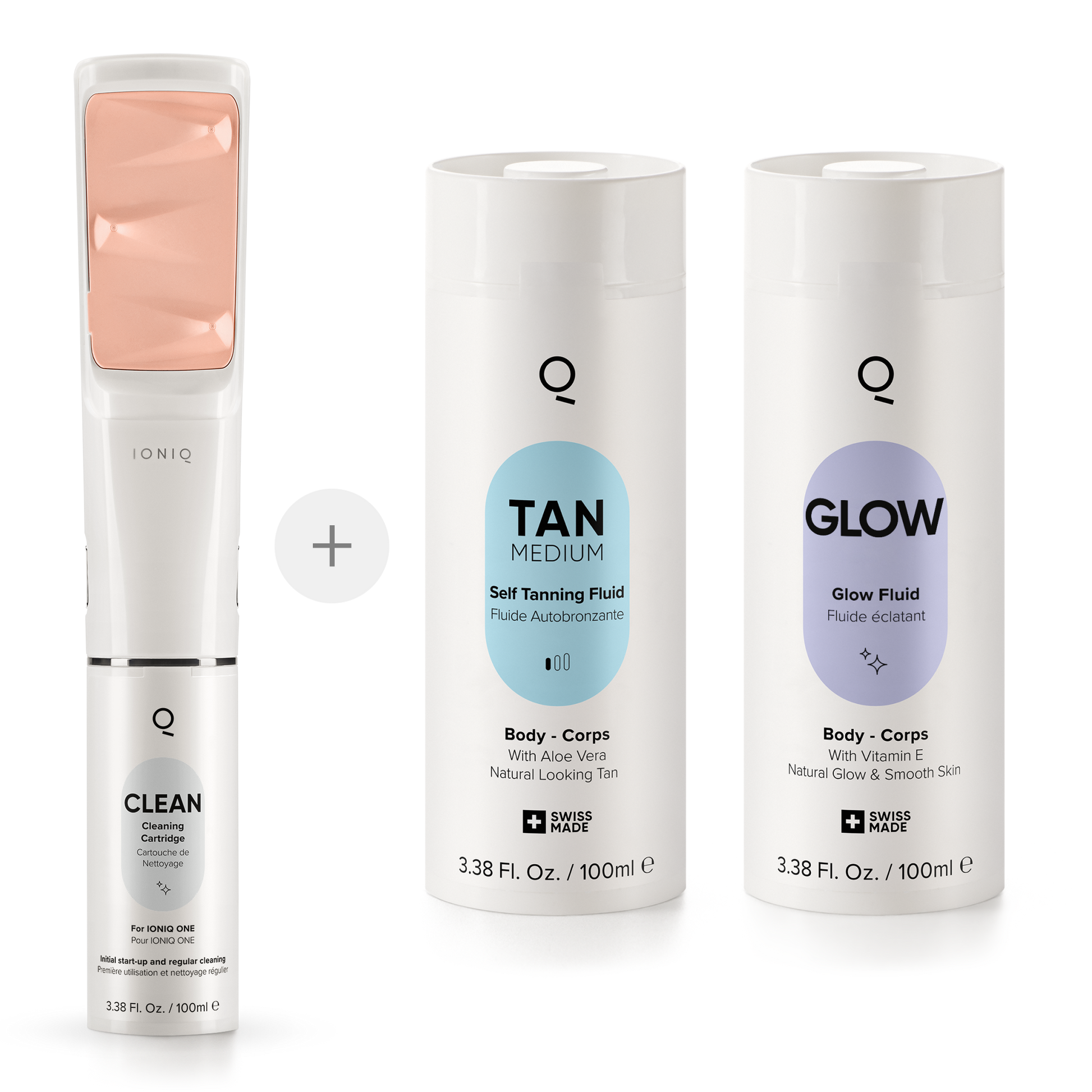 This special TAN & GLOW Bundle will be your grand entrance into the world of most effective, effortless and exclusive skincare. In only one set you will experience the unparalleled benefits of the IONIQ Skincare System with BODY, TAN and the IONIQ ONE Sprayer.
