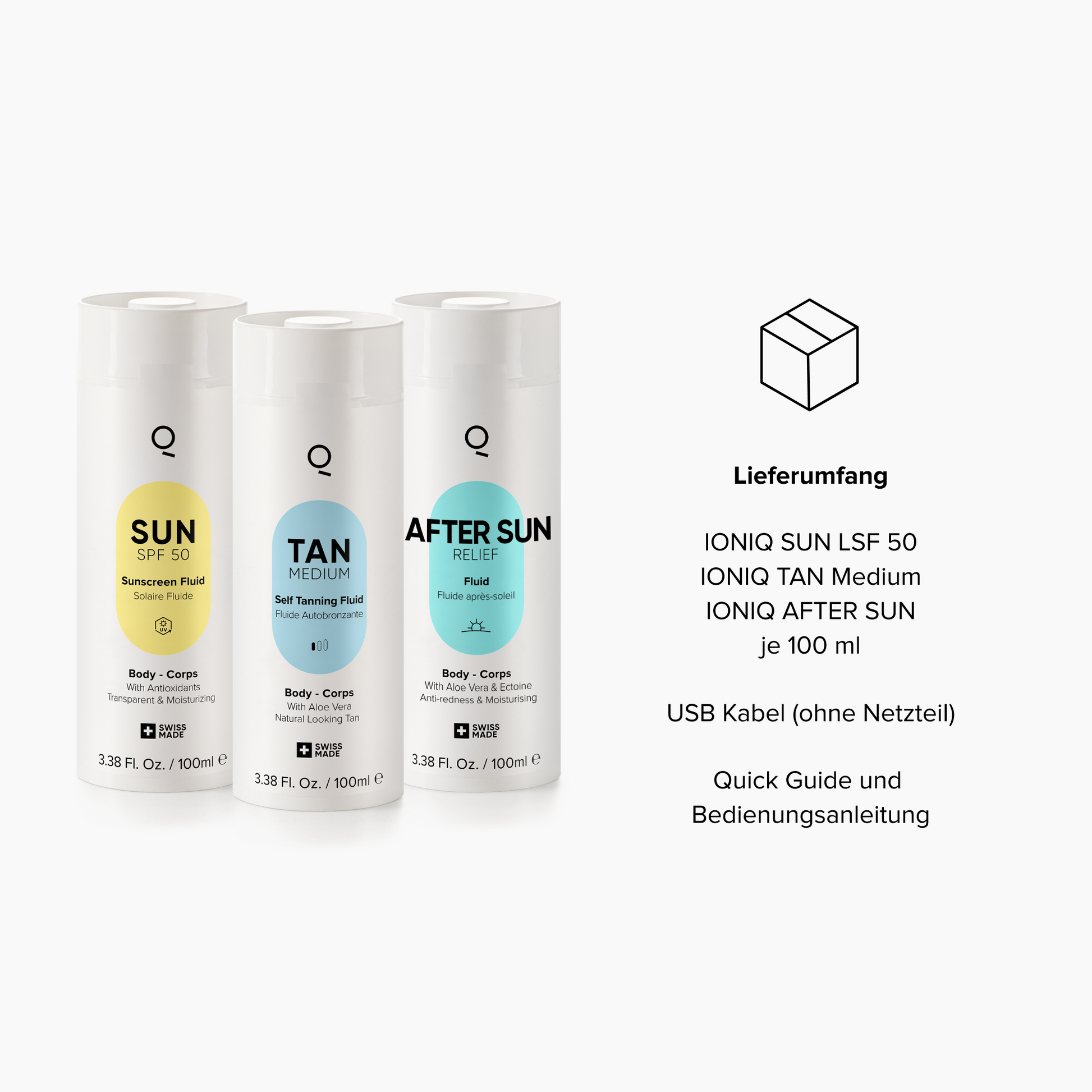 "IONIQ TAN offers an even and natural tan. No rinsing, no stains, no discolored clothes, pleasant scent!"