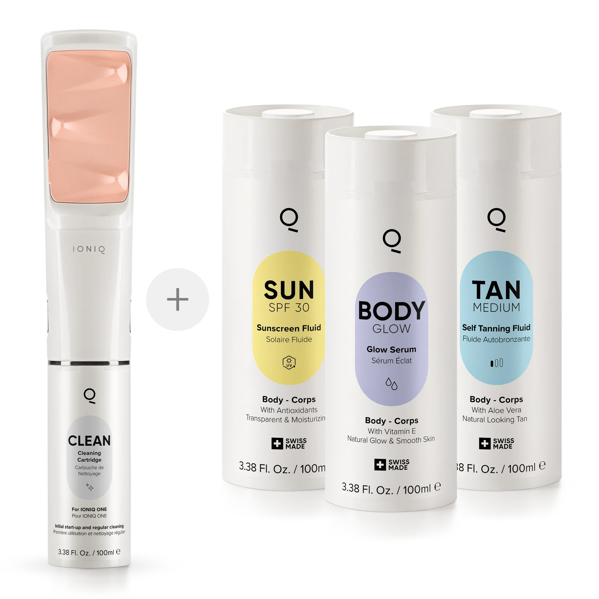 - IONIQ SKINCARE cartridges (SUN SPF30, BODY Glow, TAN Medium)