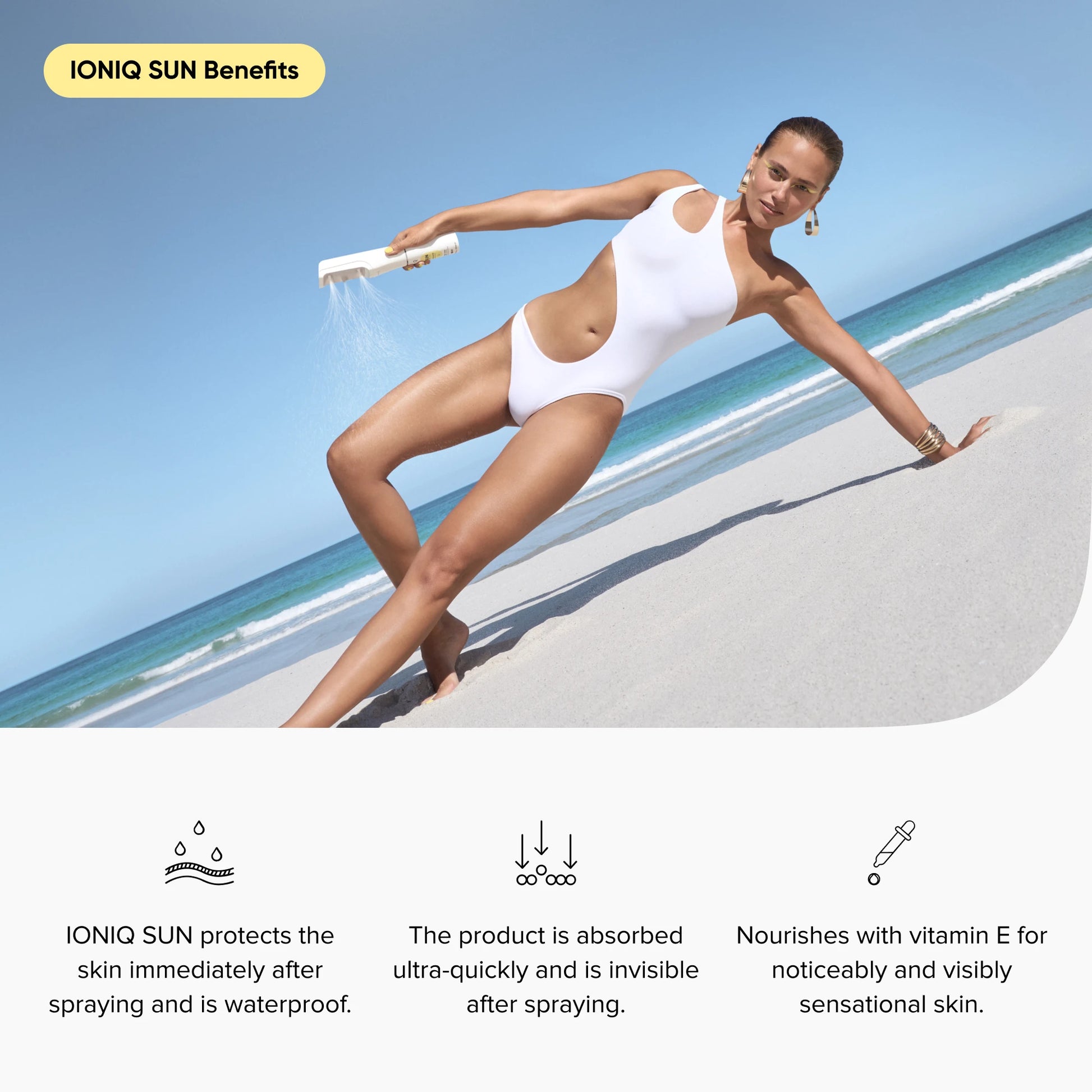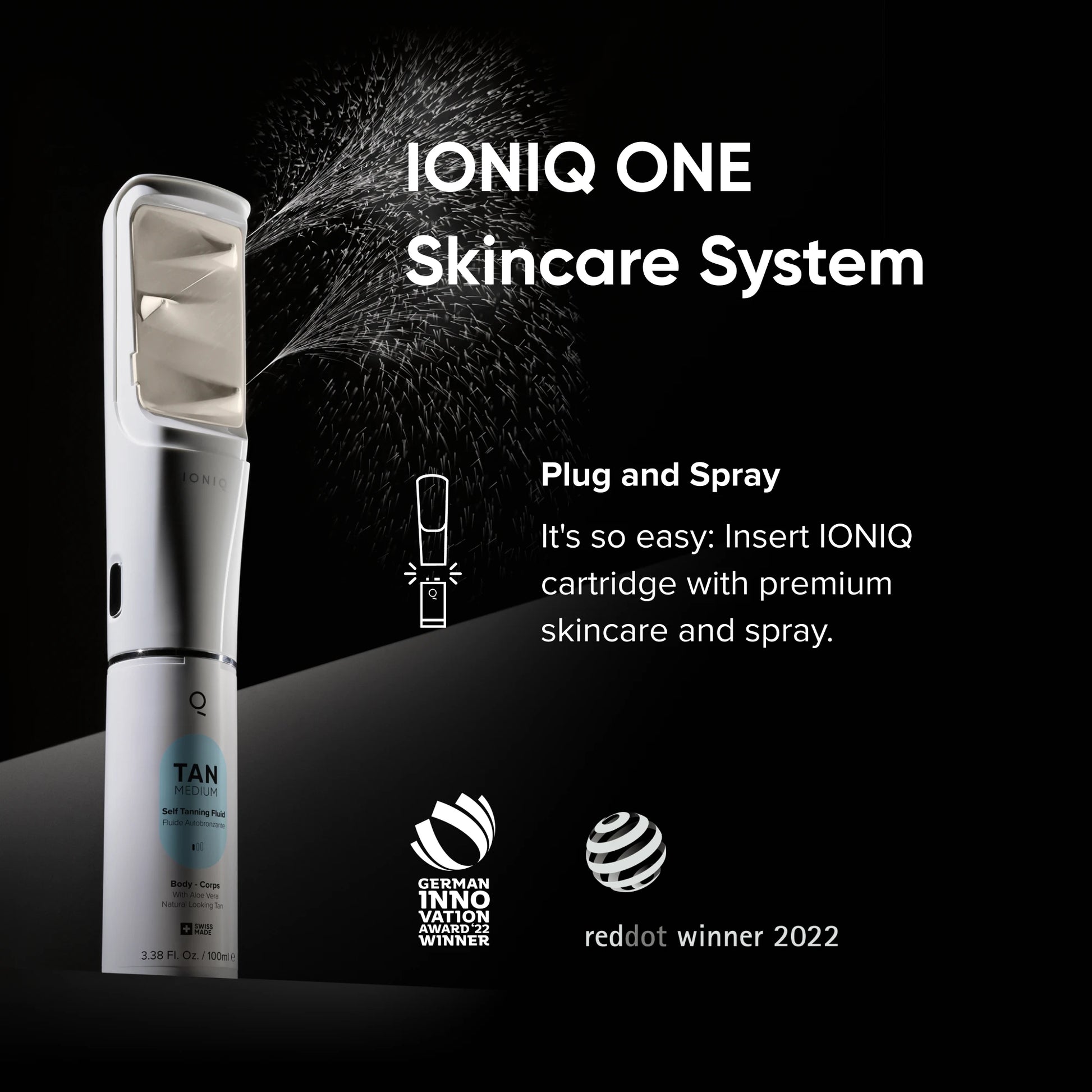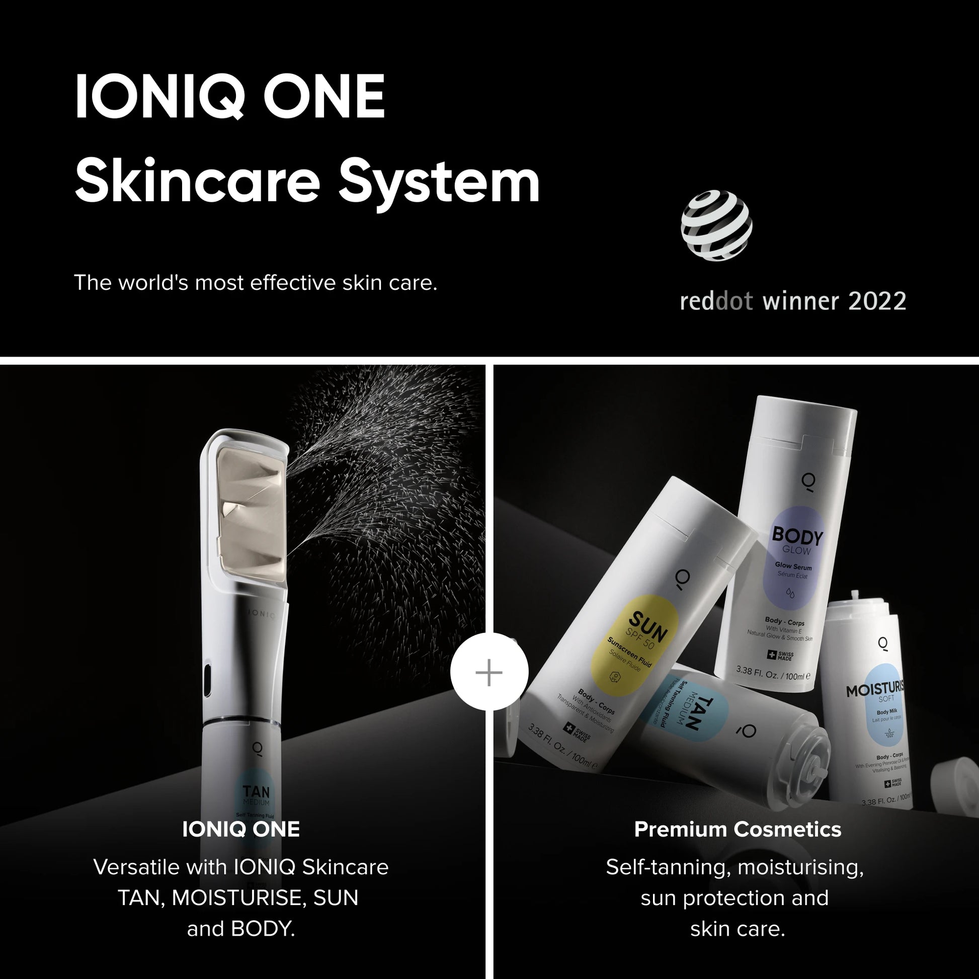 This special IONIQ Collection will be your grand entrance into the world of most effective, effortless and exclusive skincare. In only one set you will experience the unparalleled benefits of the IONIQ Skincare System with all the opportunities, SUN, BODY and TAN are offering in combination with the IONIQ ONE Sprayer.